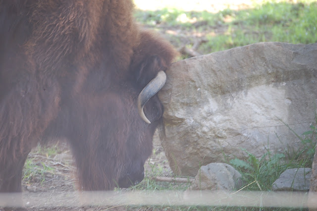 The rollers in Toledo didn't fly much. They mostly sat as high as they could under a skylight (the aviary is indoors), and we felt a bit sad as we projected wistful longing onto them. One June day in Columbus, a roller was flying back and forth between a perch closer to me and one farther away, and I seized the opportunity. Here's the far perch: